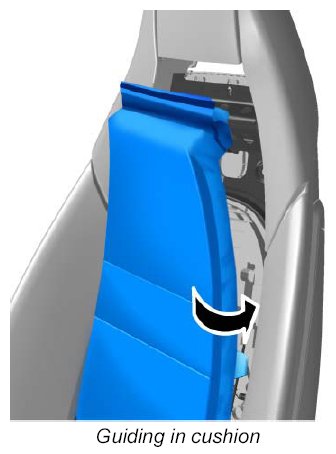 6. Guide the backrest cushion into the guide in the side bolsters on both sides -arrow- .