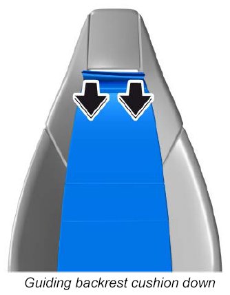 7. Guide the backrest cushion down and into position -arrow- .