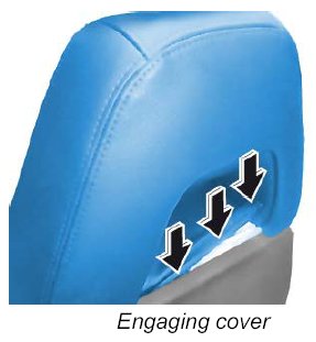9. Engage the cover under the headrest -arrow- .