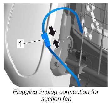 2. Plug in plug connection for suction fan -1- ( -arrows- ).