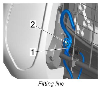 3. Fit insulation -1- around the plug connection for the suction fan and secure the line with -2- tie-wraps.