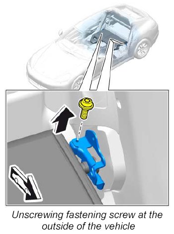 3. Unscrew fastening screw for securing clip at the outside of the vehicle.