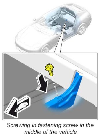 4. Screw in fastening screw for securing clip in the middle of the vehicle and tighten to the specified torque