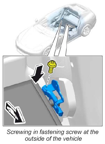 5. Screw in fastening screw for securing clip at the outside of the vehicle and tighten to the specified torque