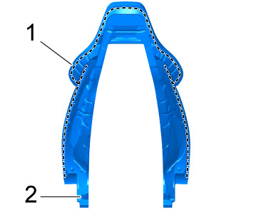 1. Apply adhesive to the marked area -1- of the padding -2-.