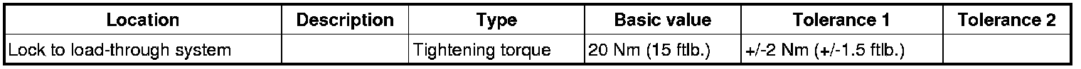3. Screw in fastening screws on the lock and tighten to the specified tightening torque.=> Tightening torque: 20 Nm (15 ftlb.)+/-2 Nm (+/-1.5 ftlb.)