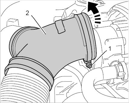 1. On naturally aspirated engines: Disconnect air box -2- from throttle housing.