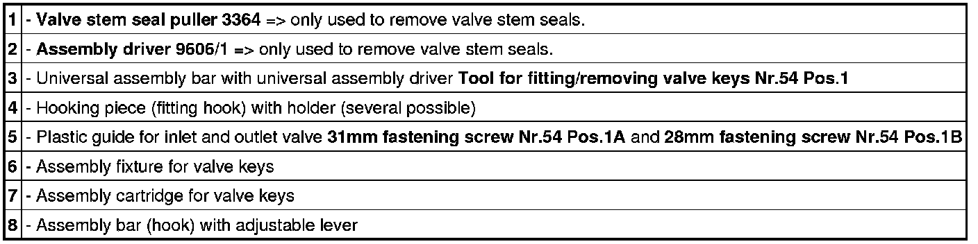 - The cylinder head fastening must not tip over when tools are used.