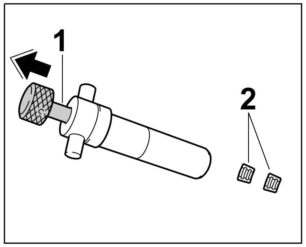 3.2. Turn the knurled screw back and forward -1- so that the valve keys engage and are held in the assembly cartridge -2-. The knurled screw moves back again.