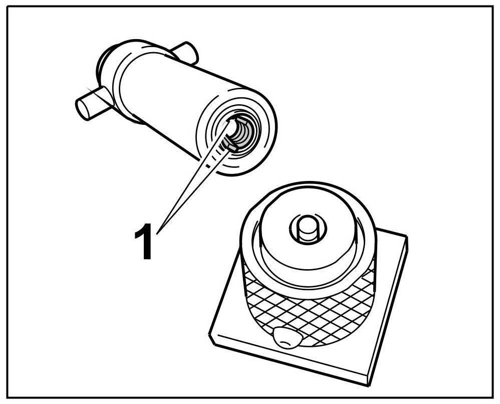 2.3. Insert assembly cartridge -1- for the valve keys into the plastic guide.