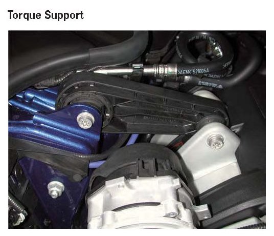 A plastic version of the torque support used in the Cayenne V8 models is used in the Panamera to reduce weight and it is secured with aluminum bolts. The torque support reduces engine movements, which occur on engines with high torque.