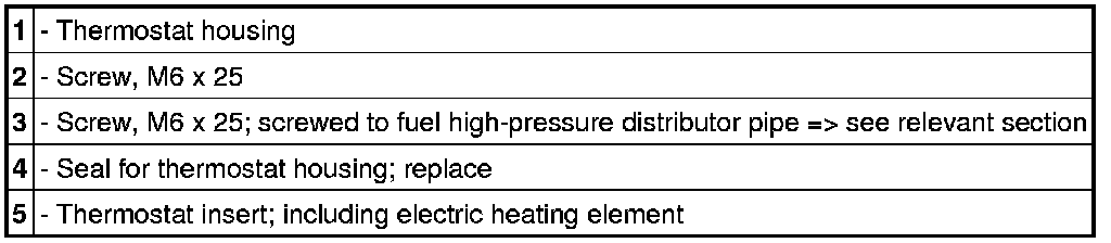 18.1. Pull out thermostat insert (coolant regulator) -5-. Pull out thermostat insert (coolant regulator) using a solid electric cable. For a detailed description of how to remove the thermostat insert, see -> 195819 Removing and installing coolant regulator Service and Repair.