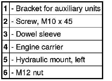 23. Remove engine carrier with engine mountings on both sides on 2WD engine. => Left bracket for auxiliary units and 2WD engine mounting => Engine mounting, right