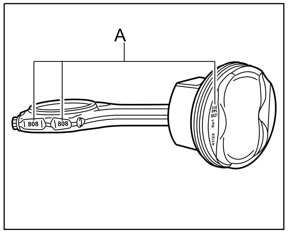 - The code on the connecting-rod big end and connecting rod cap must always be on the same side and at the exhaust side. -A- Note: Select the correct piston for the correct cylinder bank. Install with connecting rod code on the exhaust side with the direction of travel arrow on the piston.