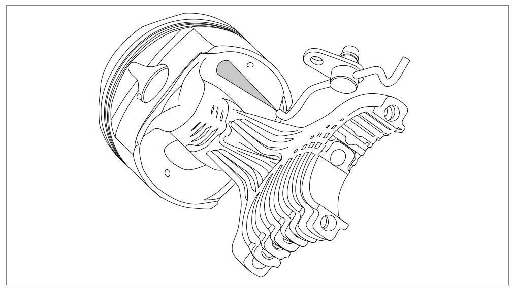 - Oil guide housing pre-fitted with oil filter and oil/water heat exchanger.