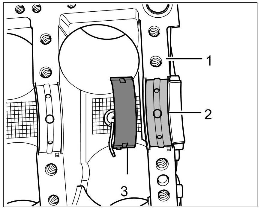 - The corresponding connecting-rod bearing shells must be selected according to the marking on the crankshaft transmission flange (4-digit) and inserted into the connecting rod.