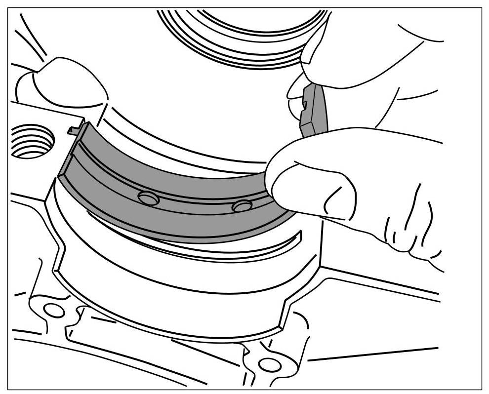 1. Place crankshaft bearing shells into the lower part of the crankcase.