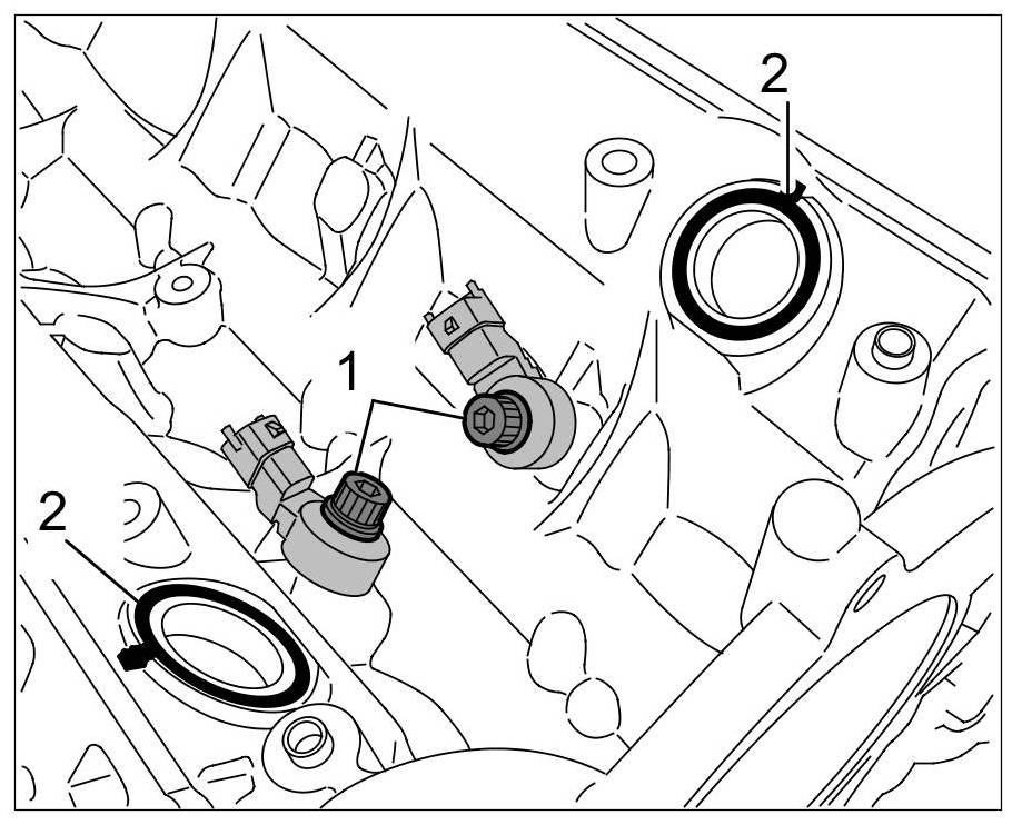 2. If you have not already done so, fit knock sensors on the upper part of the crankcase using screws.