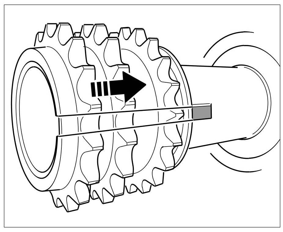 5. Pre-fit spring wedge of crankshaft into the corresponding groove on the crankshaft using a plastic hammer if necessary.