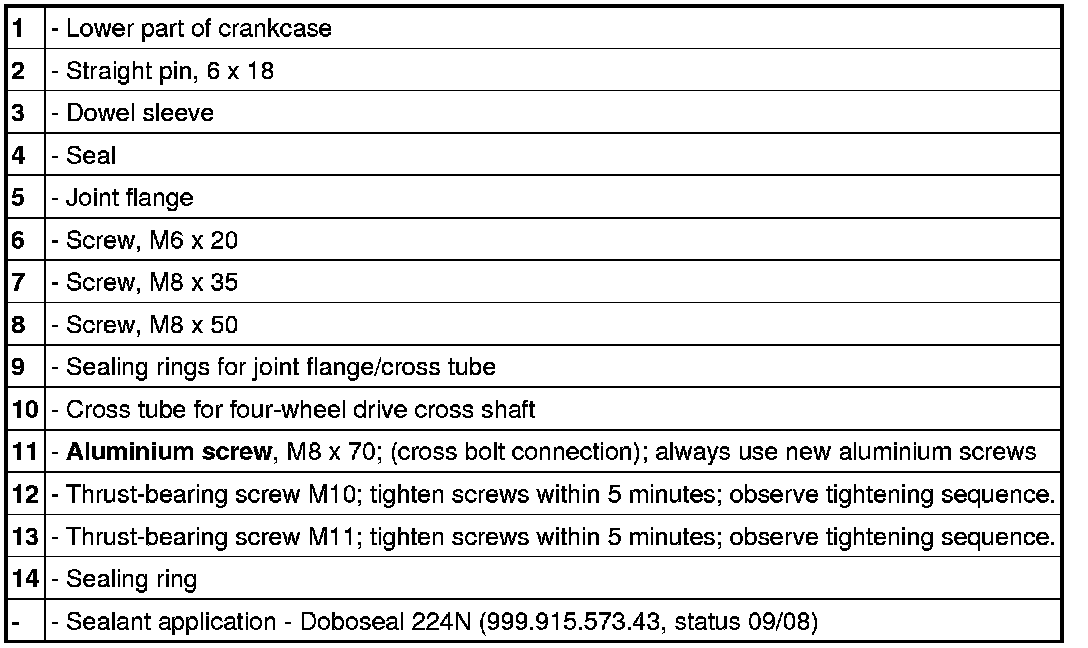 Tightening sequence for securing lower part of crankcase to upper part of crankcase (cross bolt connection)