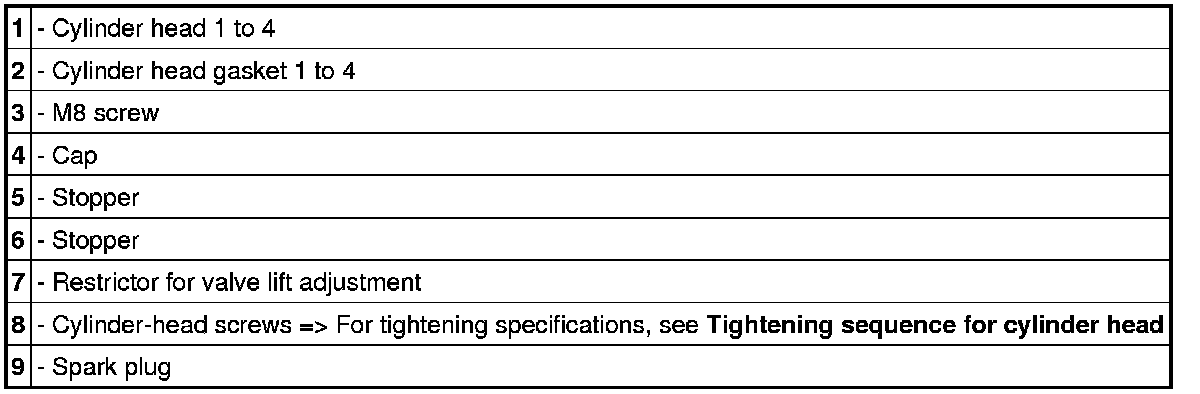 30. Position cylinder heads, insert cylinder head screws and fit them. Observe tightening sequence and prescribed tightening torque.