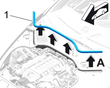 7. Release clip on coolant hoses at the plenum panel and remove them from the connection point at the plenum panel (cross panel).
