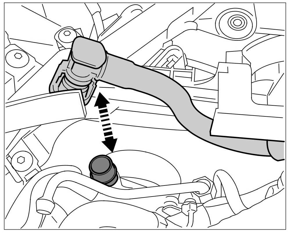 8. Pull breather hose off the bleeder valve -arrow- and set it down on the engine.