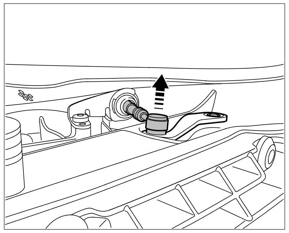 33.1. Disconnect parking lock cable from the lever using disassembly tool Nr.21. => Removing parking lock cable