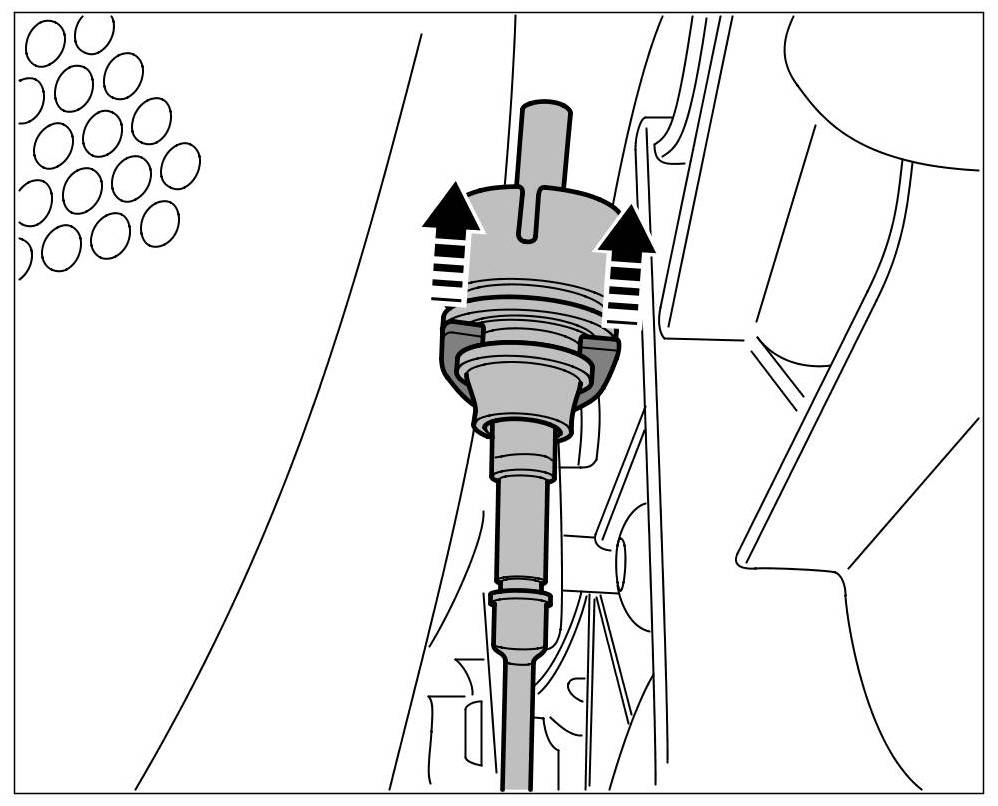 26. Press the pressure hose aside at both sides, loosen the hose clamp -arrow- on the suction hose and pull off the hose.