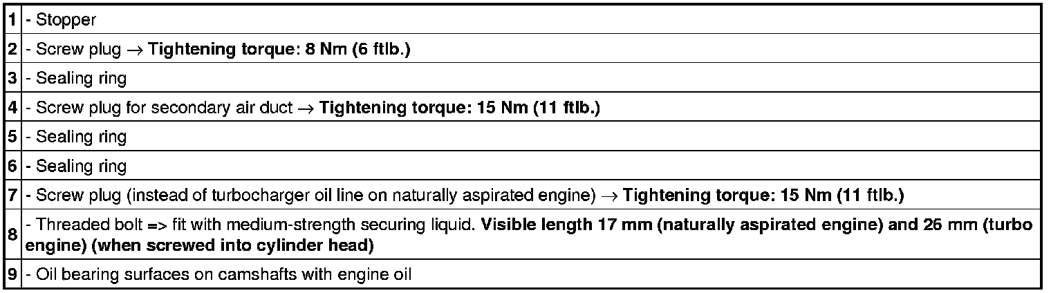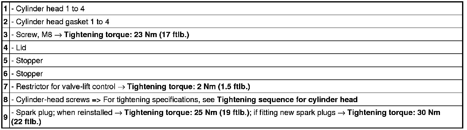 Cylinder head 5 to 8