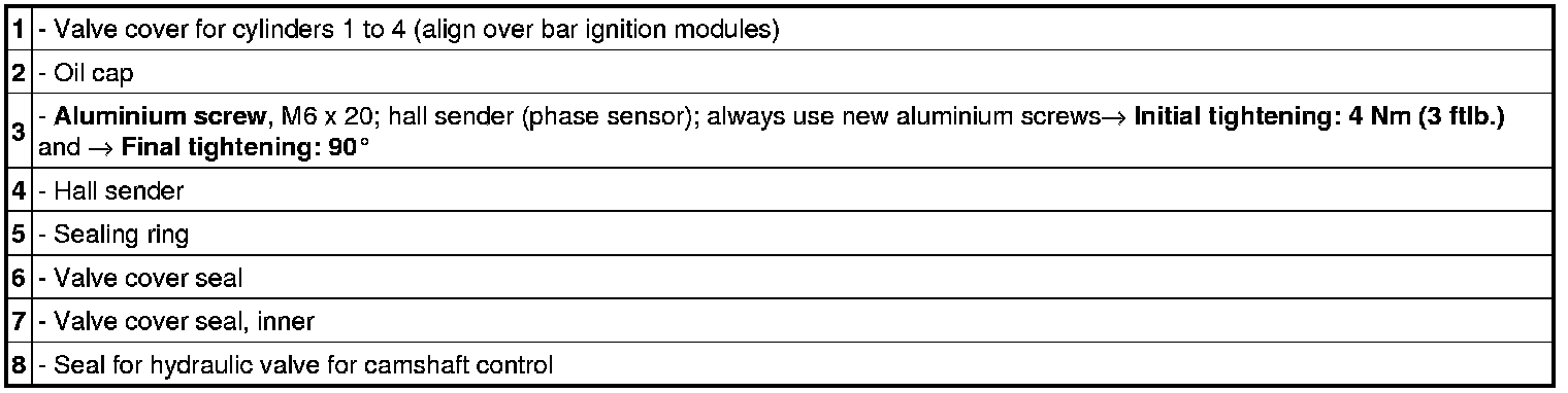 Valve cover for seals, cylinders 1 to 4