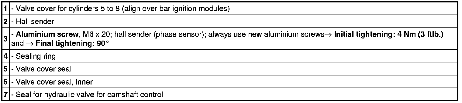 Valve cover for seals, cylinders 5 to 8