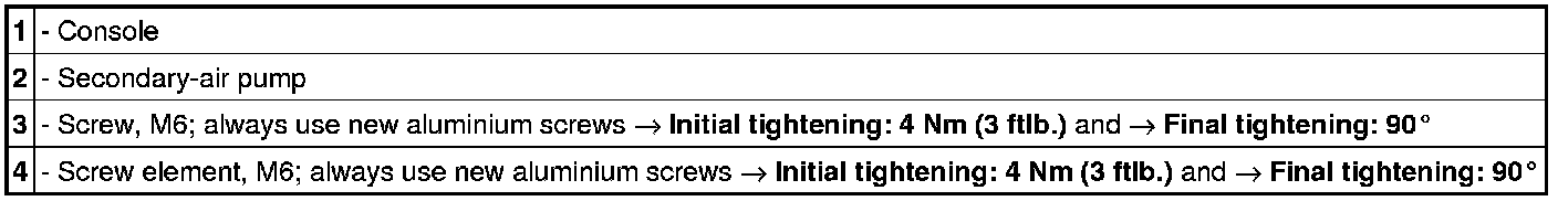 Tightening sequence for exhaust manifold on naturally aspirated engine, cylinders 1 to 4