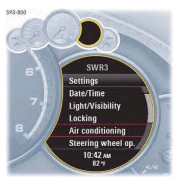 In the Panamera, the extended air-conditioning functions listed below are available in conjunction with the "14-way power seats with memory package" and can be set individually. The settings can be configured using the combination control stalk on the on-board computer of the instrument cluster (multi-function display).