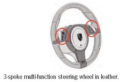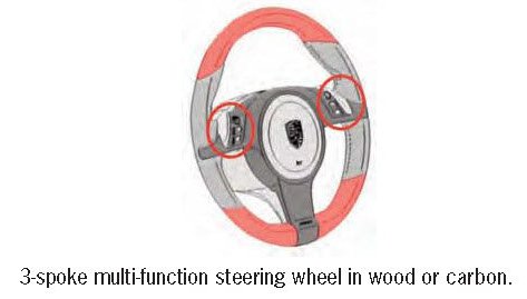 The sports and multi-function steering wheel can be equipped with steering wheel heating as an optional extra. The optional multi-function steering wheels in wood and carbon are always equipped with steering wheel heating. The heating for the steering wheel rim can be switched on and off separately using a button on the 6 o'clock spoke (subject to release from energy management system).