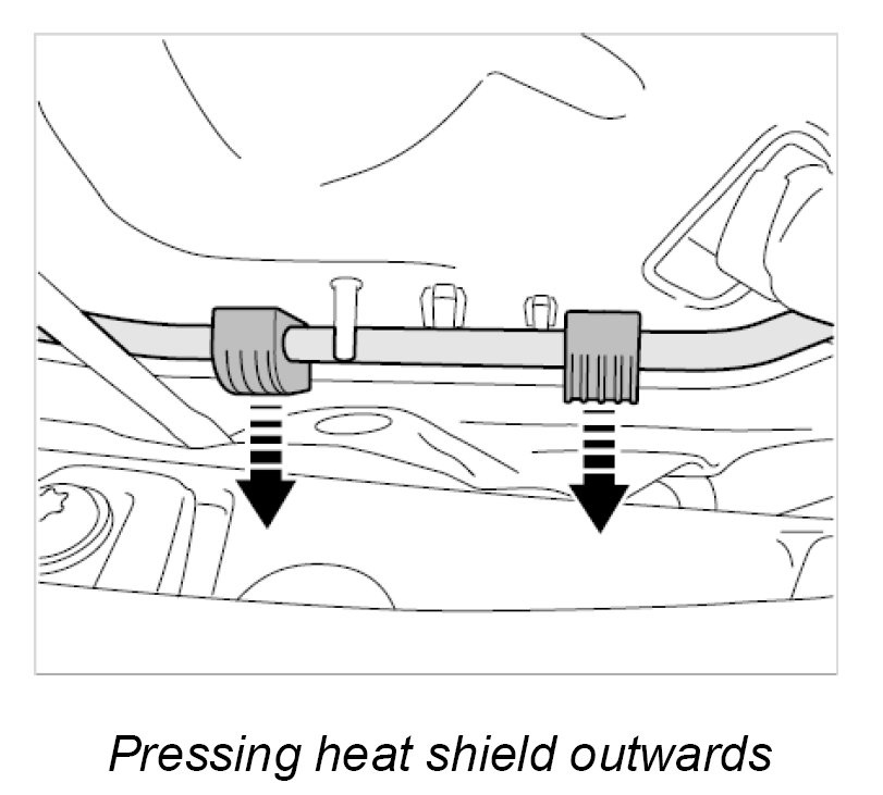 9. Screw off the fastening nut -5- and press the heat shield -6- to the right in direction of travel.