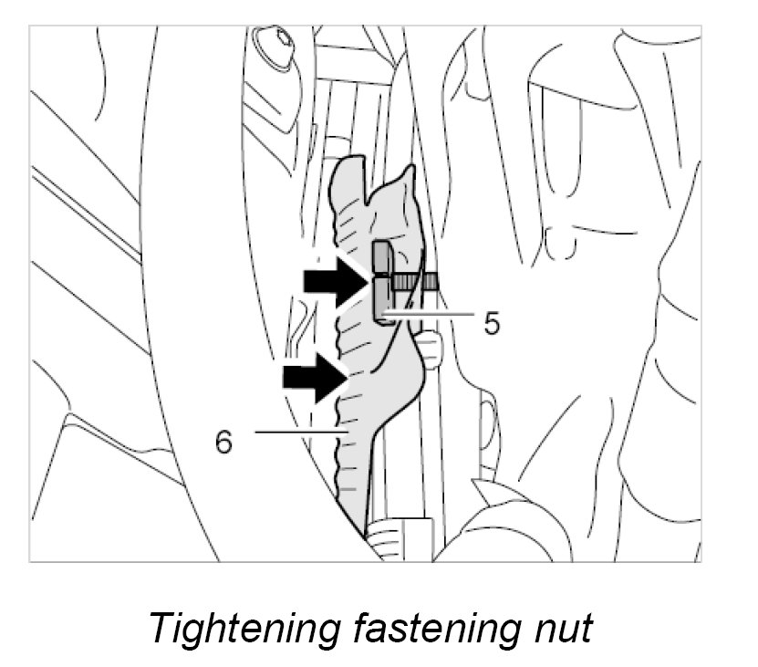 6. Slide the heat shield -6- over the bolts and secure it with the fastening nut -5-.