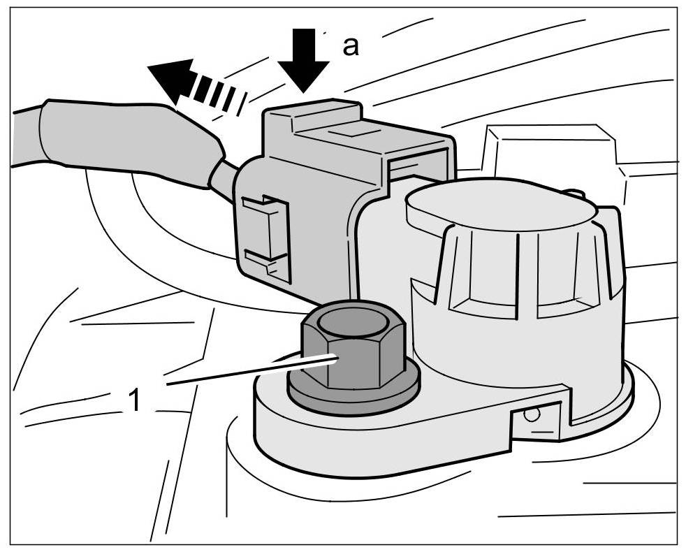 1. Release electric plug connection -a- and pull off connector.