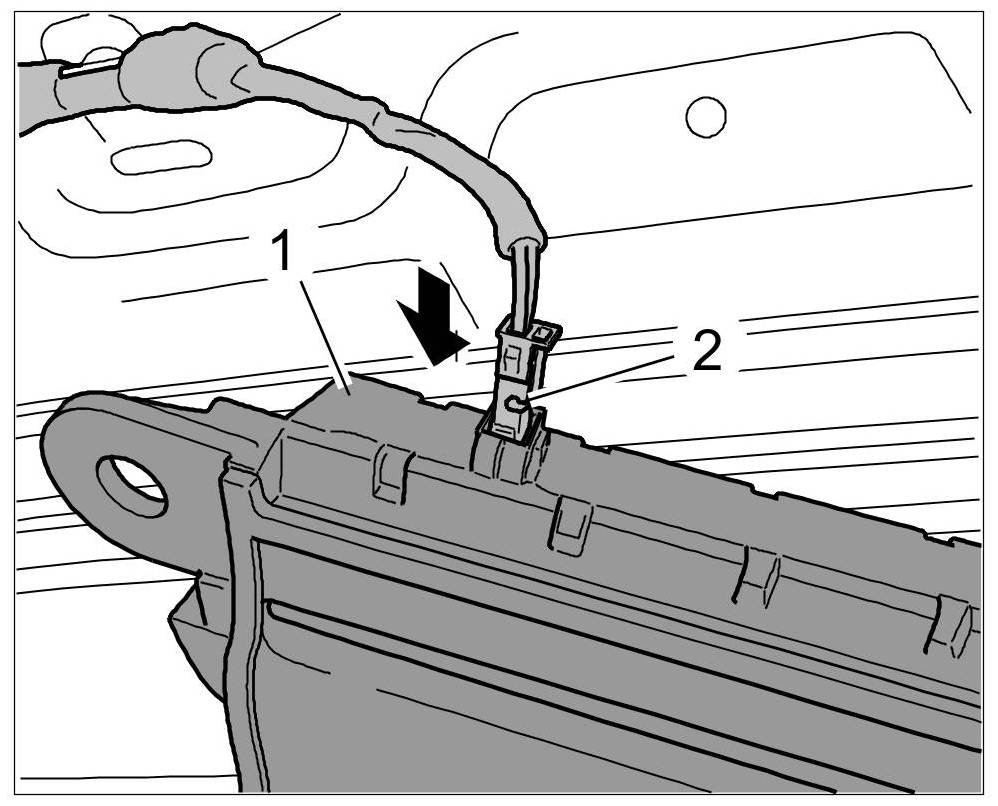 1. Plug in electric connector -2- for additional brake light -1-. Check that it is seated securely.