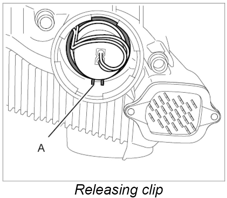 2. Insert light bulb socket into the auxiliary headlight and turn to lock it (bayonet lock) until the clip -A- engages audibly on the light bulb socket.