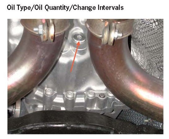 Viewed in the direction of travel, the oil inspection plug is located at the rear, in the middle, at the end of the transmission between the exhaust pipes (arrow). You can add oil/check the oil level in the same way that you do for the PDK in sports cars. The correct oil level is important for proper operation and long life of the transmission.