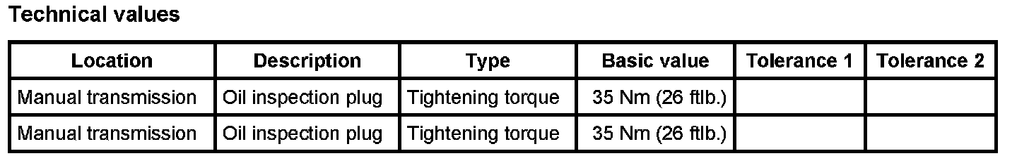 2. The oil level is correct if the oil reaches the lower edge of the inspection window. If this is not the case, top up transmission oil.