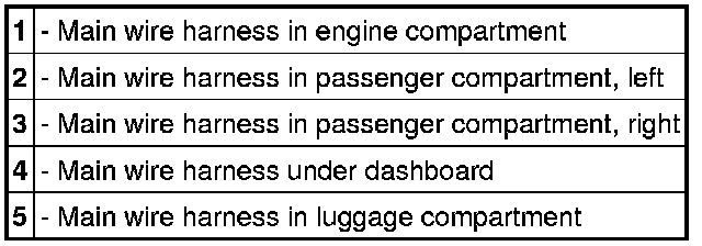 -> 97090900 Loosening and securing main wire harness in engine compartment 97090900 Loosening and securing main wire harness in engine compartment