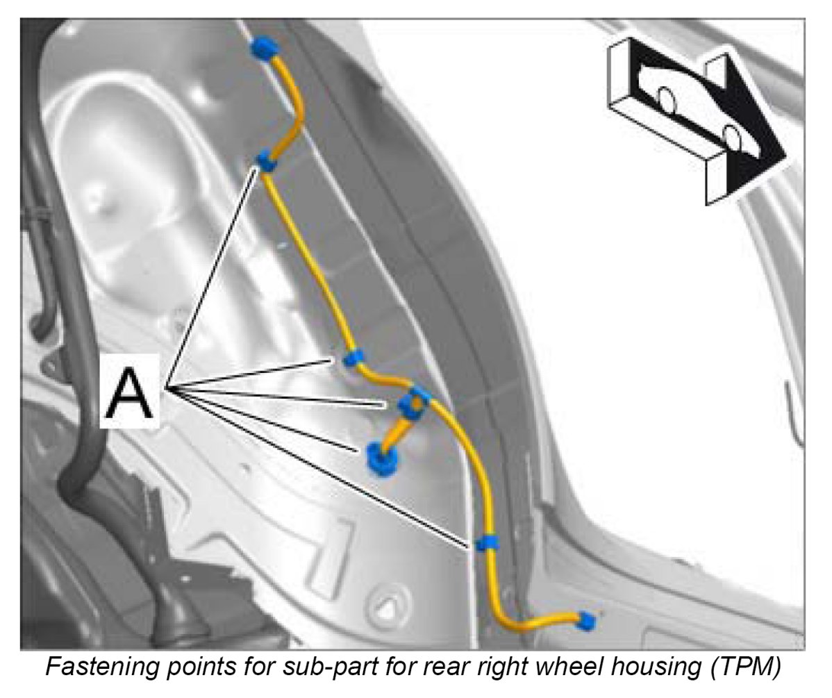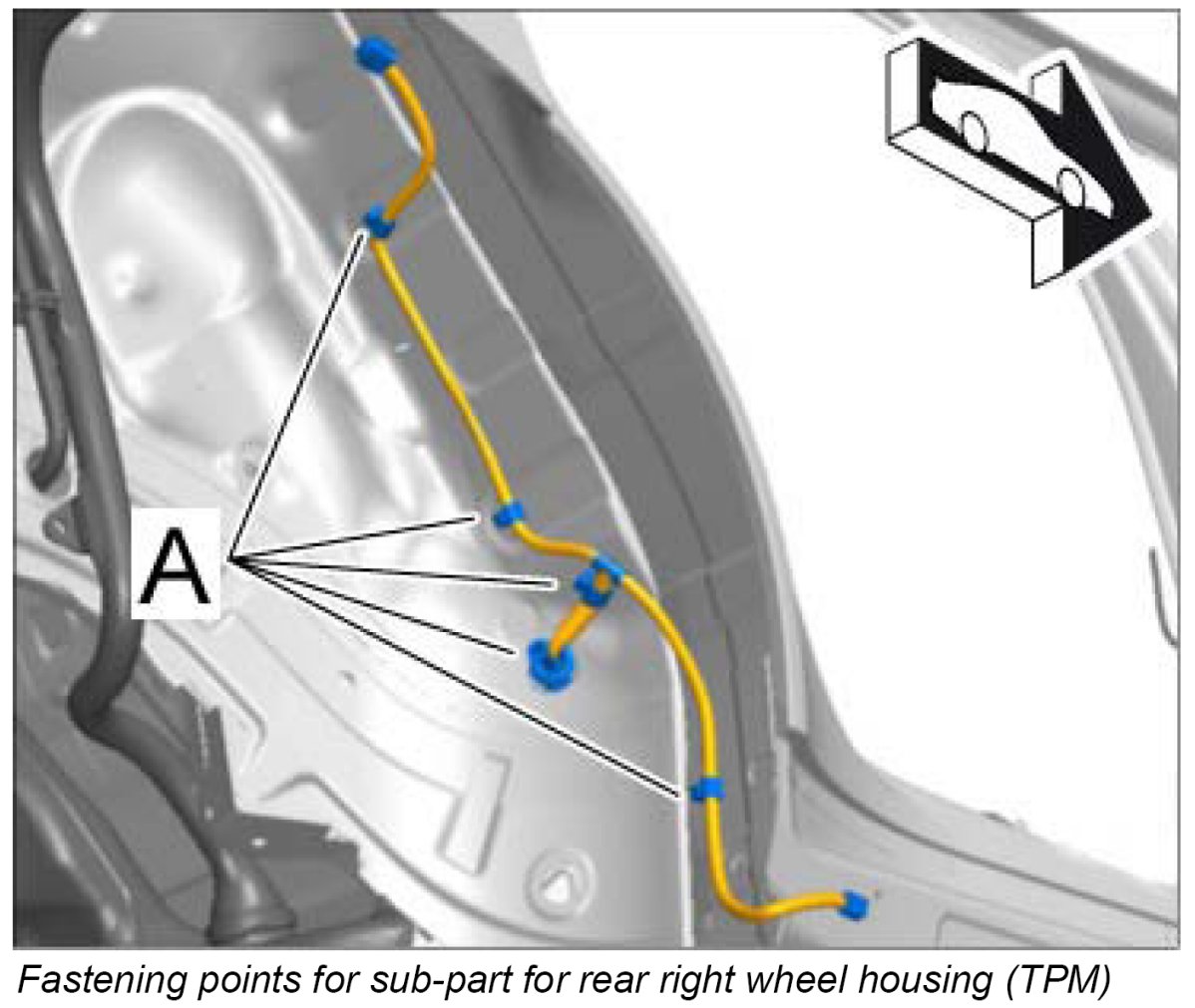 Installing sub-part of wire harness for rear right wheel housing (TPM)