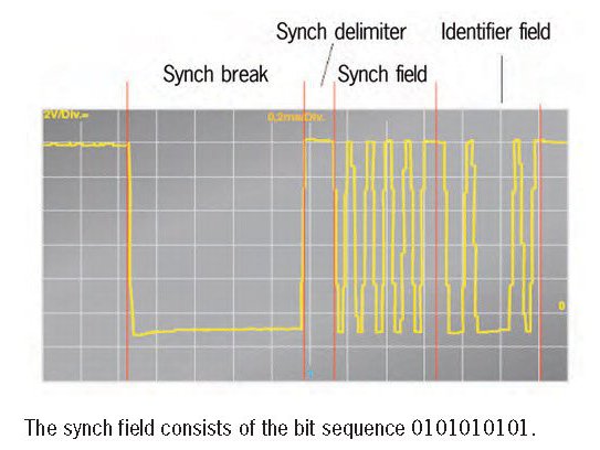 All LIN slave control units can adjust to (synchronize with) the system clock rate of the LIN master control unit via this bit sequence. All control units must be synchronized to ensure a seamless exchange of data. If the synchronization is lost, the bit values would be positioned incorrectly in the message upon reception. This would lead to errors in the data transfer.