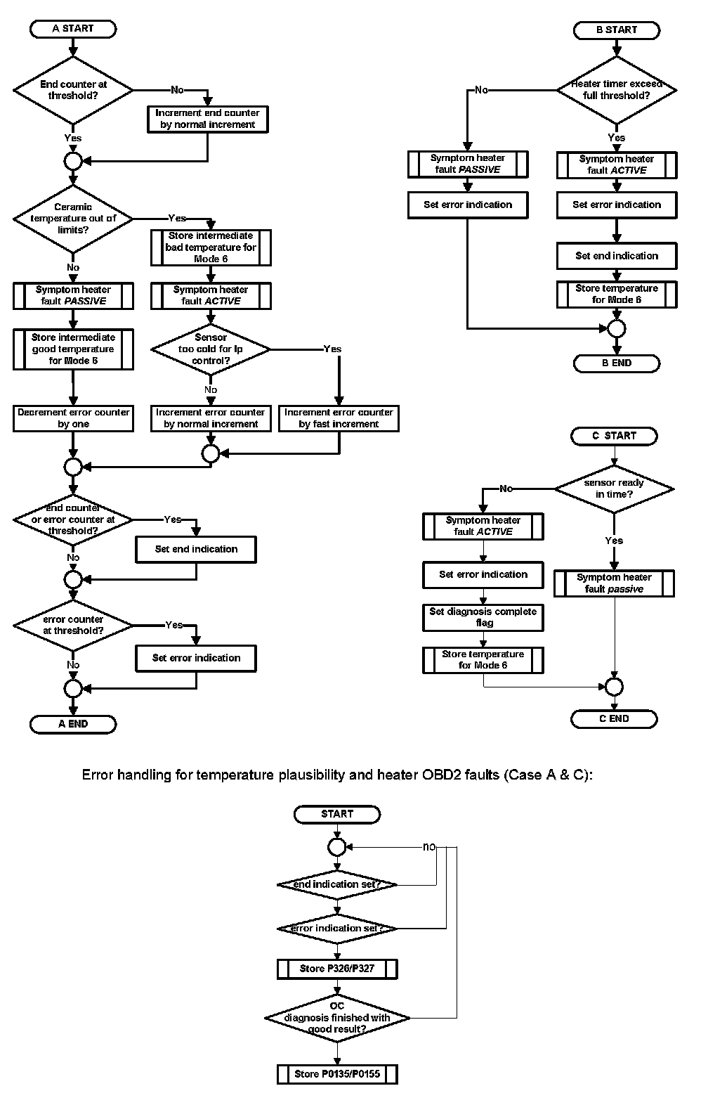 If one of the above mentioned symptoms is present, a malfunction is detected and the corresponding fault code is stored.