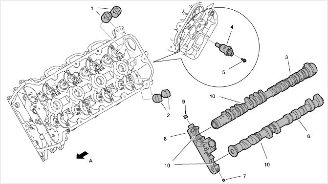 Camshafts, cylinder bank 5 to 8