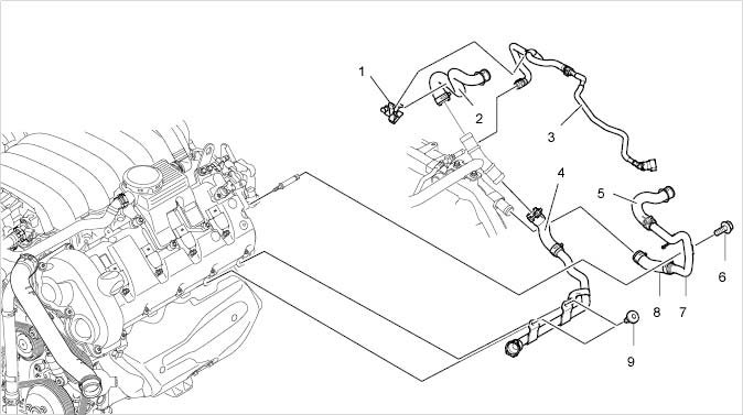 2. Cylinder bank 5 to 8: Secure water tube.