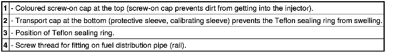 - The new fuel injectors are supplied with two transport caps fitted.