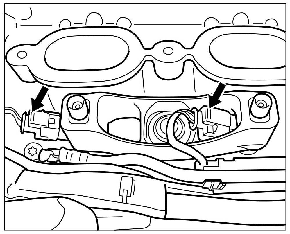 1. Pull cable plugs off the injectors. -arrows-